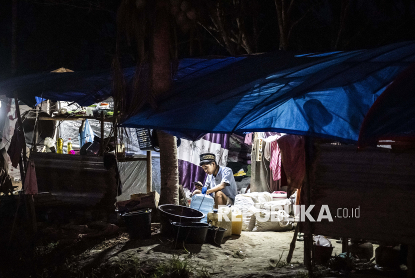 REPUBLIKA.CO.ID, ACEH -- Warga terdampak bencana alam berada di hunian daruratnya di Desa Sahraja, Pante Bidari, Aceh Timur, Aceh, Ahad (22/2/2026).