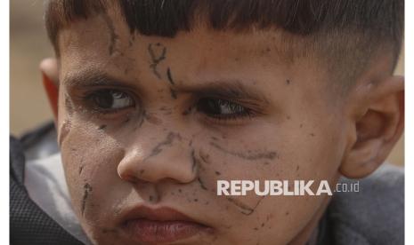 REPUBLIKA.CO.ID, GAZA -- Potret Adam Suleiman Abu Halib, seorang anak Palestina berusia lima tahun yang wajahnya penuh bekas luka akibat serangan Israel berpose di Kota Gaza, Kamis (22/1/2026).