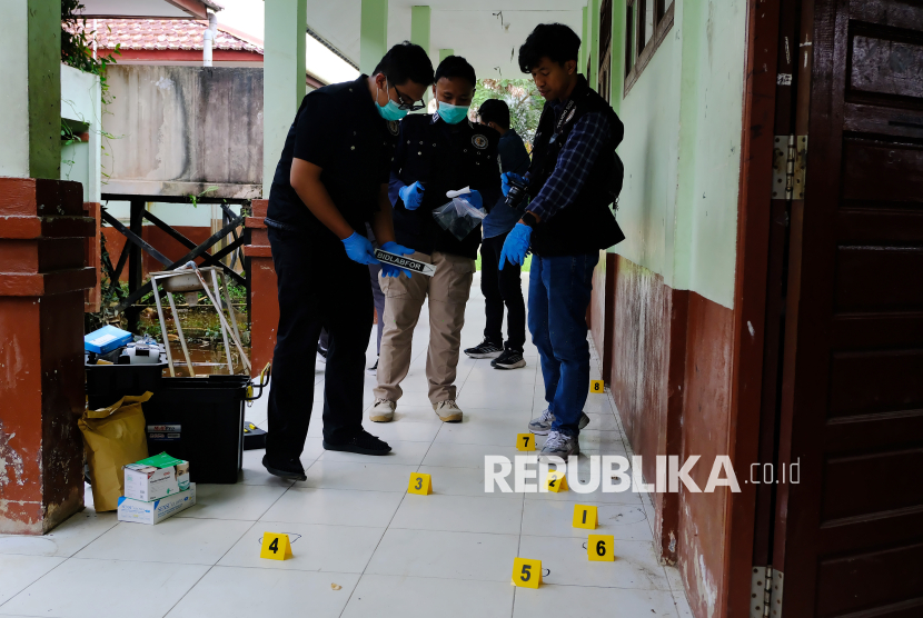 REPUBLIKA.CO.ID, KUBU RAYA -- Personel Den Gegana Sat Brimob Polda Kalbar melakukan olah Tempat Kejadian Perkara (TKP) di ruang kelas SMPN 3, Sungai Raya, Kabupaten Kubu Raya, Selasa (3/2/2026).
