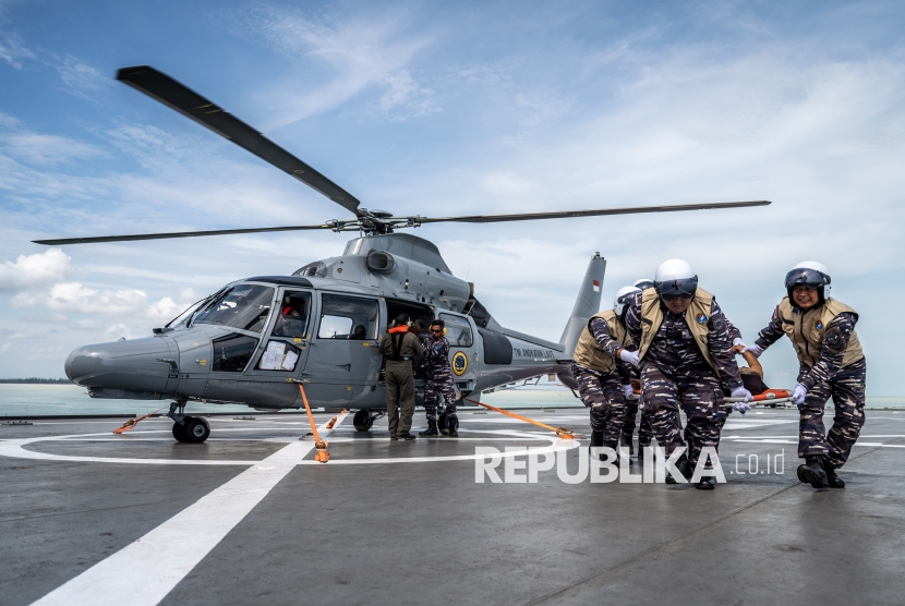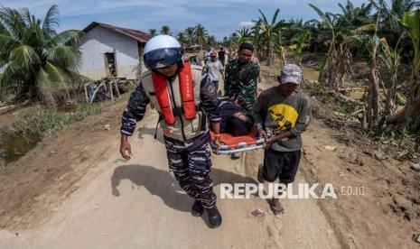 TNI AL menggunakan helikopter untuk melakukan evakuasi medis lewat udara bagi warga yang terdampak bencana alam karena sulit dijangkau melalui jalur darat akibat akses yang terputus di wilayah Aceh Tamiang.