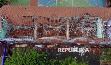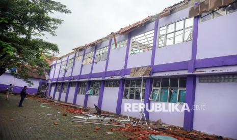 REPUBLIKA.CO.ID, BOGOR -- Petugas Pemadam Kebakaran Kabupaten Bogor melakukan pengecekan reruntuhan atap kelas bangunan SMAN 2 Gunungputri, Kabupaten Bogor, Jawa Barat, Jumat (23/1/2026).