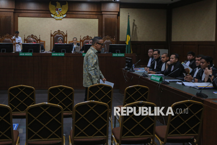 Terdakwa Immanuel Ebenezer atau Noel menjalani sidang perdana di Pengadilan Tipikor, Jakarta. Sidang tersebut beragendakan pembacaan dakwaan terhadap Mantan Wakil Menteri Ketenagakerjaan Noel dan terdakwa lainnya dalam kasus dugaan pemerasan pengurusan sertifikat K3 (Keselamatan dan Kesehatan Kerja) di lingkungan Kementerian Ketenagakerjaan. (FOTO : Republika/Thoudy Badai)