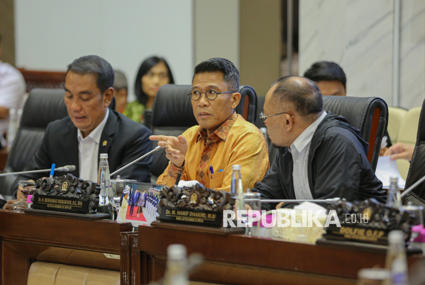 Ketua Komisi XI DPR RI Mukhamad Misbakhun (tengah) memimpin rapat uji kelayakan dan kepatutan atau fit and proper test calon Deputi Gubernur Bank Indonesia di ruang Komisi XI DPR, Kompleks Parlemen, Senayan, Jakarta, Senin (26/1/2026). Dicky Kartikoyono merupakan satu dari tiga nama calon Deputi Gubernur BI yang diusulkan Presiden Prabowo Subianto, melalui melalui surat Presiden yang dikirim ke DPR RI. (FOTO : Republika/Thoudy Badai)