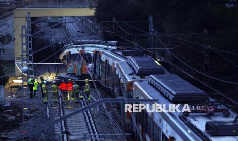 REPUBLIKA.CO.ID, BARCELONA -- Petugas memeriksa kereta komuter yang menabrak dinding pembatas rel di Gelida, Barcelona, Spanyol, Rabu (21/1/2026).