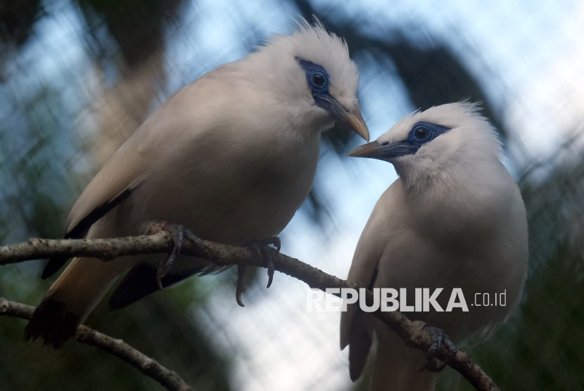 REPUBLIKA.CO.ID, BADUNG -- Dua ekor burung Curik Bali (Leucopsar rothschildi) berdiri di atas ranting saat pelepasliaran di Desa Adat Karang Dalem Tua, Badung, Bali, Kamis (9/4/2026).