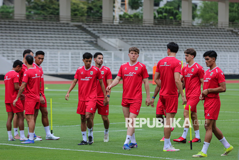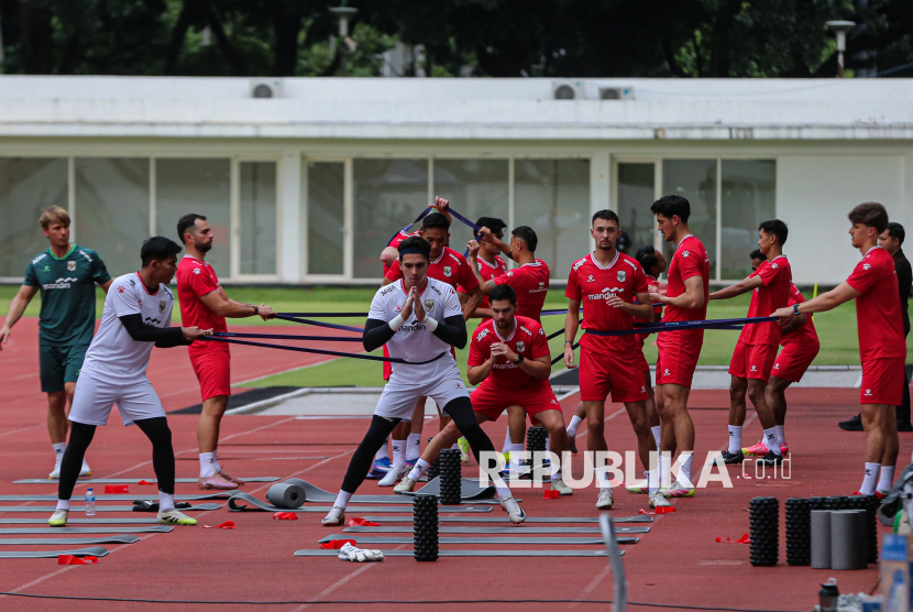 REPUBLIKA.CO.ID, JAKARTA -- Pemain Timnas Indonesia saat sesi latihan di Stadion Madya, Kompleks Stadion Utama Gelora Bung Karno (SUGBK), Jakarta, Selasa (24/3/2026).