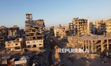 Penampakan kerusakan rumah dan bangunan di Kota Gaza, Sabtu (25/10/2025). Data satelit PBB (UNOSAT) pada Desember 2024, diperkirakan 245.123 unit rumah hancur akibat serangan Israel. Pembangunan kembali rumah-rumah yang hancur di Gaza akan memakan waktu setidaknya hingga 2040, dan kemungkinan akan berlangsung selama beberapa dekade. (FOTO : REUTERS/Dawoud Abu Alkas)