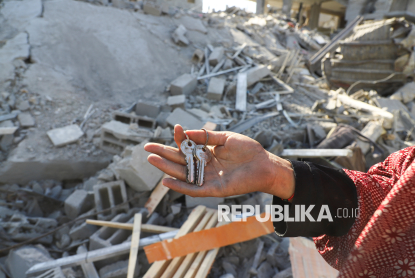 REPUBLIKA.CO.ID, GAZA -- Warga Palestina, Amal Taleb Alyan pergi meninggalkan rumah bersama keluarganya untuk mengungsi akibat perang. Saat pergi, ia tetap menyimpan kunci rumahnya, agar suatu saat bisa kembali.
