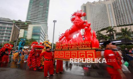REPUBLIKA.CO.ID, JAKARTA -- Parade barongsai dan ondel-ondel tampil dalam rangkaian Jakarta Penuh Warna saat Hari Bebas Kendaraan Bermotor (HBKB) di kawasan Bundaran HI, Jakarta, Ahad (8/2/2026).