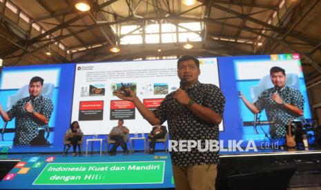 Ekonom Fadhil Hasan menyampaikan paparan saat Panel Discussion III: EBT Mulai Hari Ini! Skenario Pengembangan Energi Baru dan Terbarukan dalam acara Rembuk Energi dan Hilirisasi 2025 di Pos Bloc, Jakarta, Rabu (10/12/2025). Rembuk Energi dan Hilirisasi 2025 merupakan forum yang ditujukan untuk mendekatkan isu hilirisasi dan transisi energi kepada generasi muda melalui pendekatan kreatif dan inklusif. Acara ini mengusung tema besar Refleksi Tata Kelola Hilirisasi: Energi Masa Depan Indonesia. (FOTO : Republika/Prayogi)