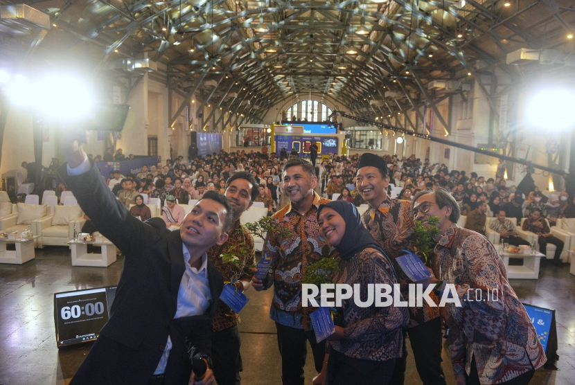 Peserta berfoto usai acara Rembuk Energi dan Hilirisasi 2025 di Pos Bloc, Jakarta, Rabu (10/12/2025). Rembuk Energi dan Hilirisasi 2025 merupakan forum yang ditujukan untuk mendekatkan isu hilirisasi dan transisi energi kepada generasi muda melalui pendekatan kreatif dan inklusif. Acara ini mengusung tema besar Refleksi Tata Kelola Hilirisasi: Energi Masa Depan Indonesia. (FOTO : Republika/Prayogi)