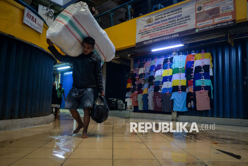 REPUBLIKA.CO.ID, JAKARTA -- Buruh angkut berjalan melewati genangan air di Pasar Cipulir, Jakarta, Kamis (22/1/2026).