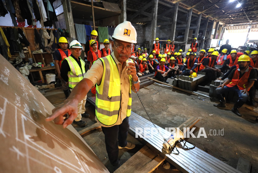 Petugas dari Kementerian Pekerjaan Umum memberikan materi tetang teknik pengecoran bangunan saat pelatihan konstruksi bersertifikat di Pondok Pesantren Lirboyo, Kota Kediri, Jawa Timur, Jumat (24/10/2025). Kementerian Pekerjaan Umum memberikan pelatihan kostruksi kepada 107 santri Lirboyo berusia minimal 18 tahun sebagai upaya meningkatkan kemampuan dan pengetahuan santri di bidang konstruksi yang diharapkan mampu berkonstribusi pada pembangunan pesantren sesuai standar nasional. (FOTO : ANTARA FOTO/Prasetia Fauzani)