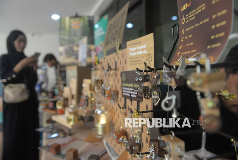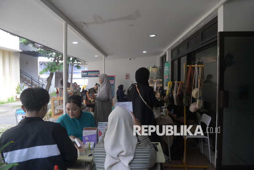 Suasana sustainability bazzar dalam acara Temu Perempuan Minimalis di Sekolah Murid Merdeka, Pesanggrahan, Jakarta, Ahad (25/1/2026). Temu Perempuan Minimalis merupakan acara tahunan yang diselenggarakan oleh Minimalist Moms Indonesia, sebuah komunitas perempuan,baik yang sudah menikah maupun belum, yang sedang belajar menerapkan gaya hidup minimalis, dimulai dari rumah dalam keseharian dan pengasuhan. Acara Temu Perempuan Minimalis juga diisi beragam kegiatan edukatif yang berfokus pada penerapan gaya hidup minimalis, berkesadaran, serta berkelanjutan dalam keseharian. (FOTO : Republika/Prayogi)
