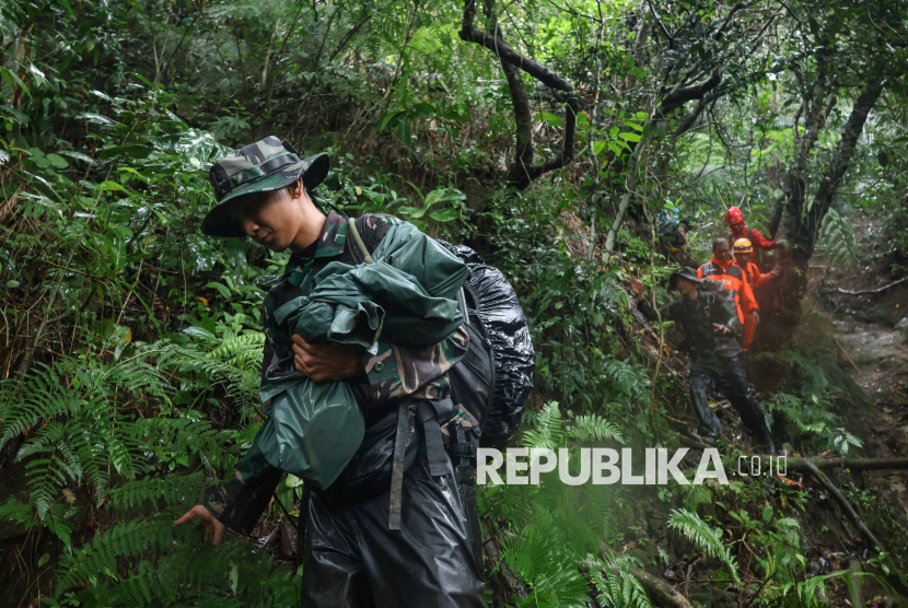 REPUBLIKA.CO.ID, SULSEL -- Tim SAR gabungan membawa paket kotak hitam pesawat ATR 42-500 menuruni lereng Gunung Bulusaraung di Desa Tompo Bulu, Kabupaten Pangkajene dan Kepulauan, Sulawesi Selatan, Rabu (21/1/2026).