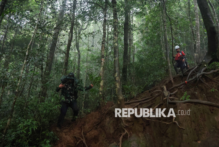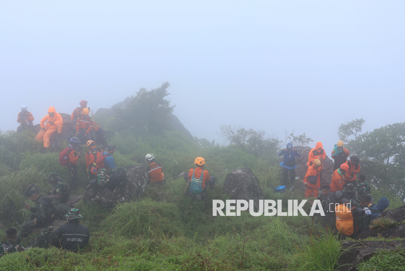 Tim SAR gabungan bersiap menuruni lereng gunung saat pencarian korban pesawat ATR 42-500 pada hari kelima di Gunung Bulusaraung, Kabupaten Pangkajene dan Kepulauan (Pangkep), Sulawesi Selatan, Rabu (21/1/2026). Hingga hari kelima pencarian, Tim SAR gabungan telah mengavakuasi dua korban dan menemukan kotak hitam pesawat yang hilang kontak pada Sabtu (17/1) tersebut, sementara pencarian delapan korban lainnya masih dilanjutkan dengan kondisi cuaca dan medan yang ekstrem. (FOTO : ANTARA FOTO/Arnas Padda)