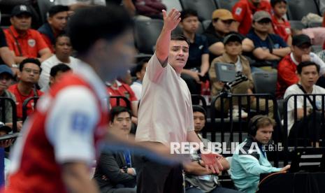 Pelatih Timnas futsal Indonesia Hector Souto memberikan instruksi kepada pemain saat melawan Korea Selatan pada pertandingan grup A AFC Futsal Asian Cup 2026 di Indonesia Arena, Senayan, Jakarta, Selasa (27/1/2026). Timnas futsal Indonesia mengalahkan timnas futsal Korea Selatan dengan skor 5-0. (FOTO : Edwin Putranto/Republika)