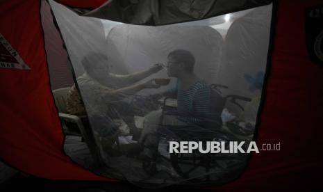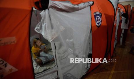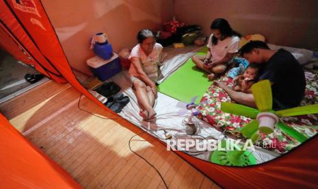 REPUBLIKA.CO.ID, QUEZON -- Warga berada di dalam tenda pengungsian saat Topan Fung-wong melanda kota Quezon, Filipina, Ahad (9/11/2025).
