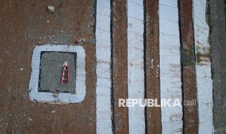 Foto udara perahu berdiri di atas tumpukan sampah yang dilapisi dengan tanah dan geotextile di TPA Jatiwaringin KabupatenTangerang, Banten, Jumat (24/10/2025). Kementerian Lingkungan Hidup meminta seluruh TPA yang masih menggunakan sistem open dumping di wilayah Jabodetabek untuk segera melakukan capping atau penutupan tumpukan sampah guna mencegah pencemaran lingkungan dan penyebaran mikroplastik. (FOTO : ANTARA FOTO/Putra M. Akbar)