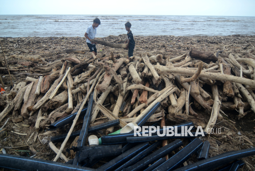 REPUBLIKA.CO.ID, TEGAL -- Sejumlah warga mengumpulkan kayu yang terdampar di Pantai Utara Desa Larangan, Kabupaten Tegal, Jawa Tengah, Senin (26/1/2026).