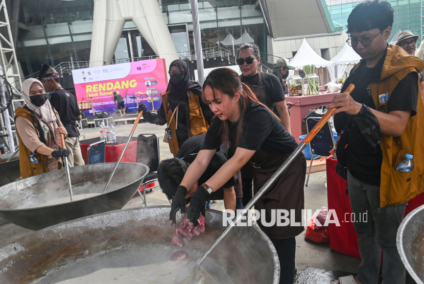 REPUBLIKA.CO.ID, JAKARTA -- Warga memasak rendang untuk Sumatera di Taman Ismail Marzuki (TIM), Jakarta, Senin (16/2/2026).