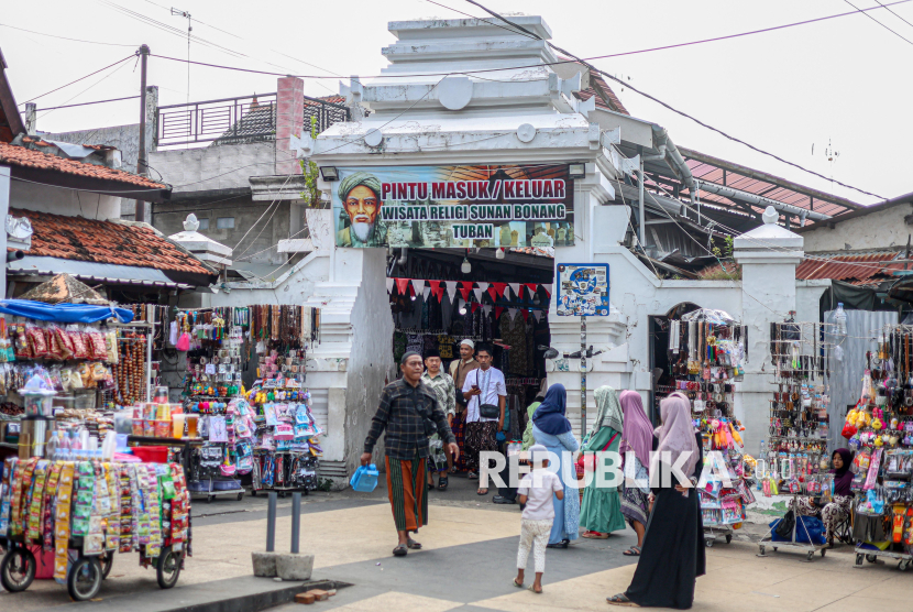Sejumlah peziarah berada di dalam kawasan makam Sunan Bonang di Tuban, Jawa Timur, Senin (16/2/2026). Menjelang Ramadhan, peziarah di salah satu makam wali atau penyebar agama Islam di Pulau Jawa itu meningkat dibanding hari biasanya yakni dari sekitar seribu hingga dua ribu orang per hari menjadi tujuh ribu hingga sepuluh ribu orang per hari. (FOTO : ANTARA FOTO/Muhammad Mada)