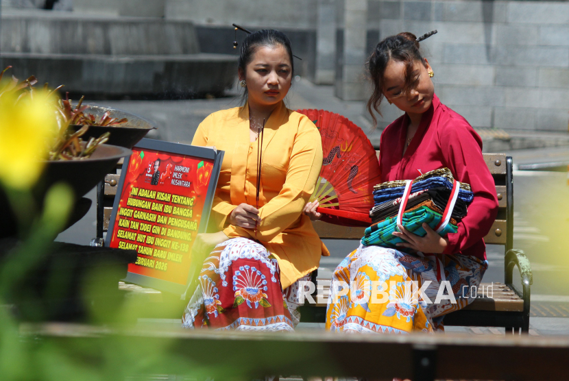 REPUBLIKA.CO.ID, BANDUNG -- Aksi teaterikal berjudul Inggit dan Kain Batik Tan Tjoei Gin bersama komunitas Mataholang dalam rangka memperihati Hari Ulang Tahun istri pertama Presiden RI Soekarno yaitu Inggit Garnasih ke-138 dan Harmoni Imlek 2026, di kawasan Baraga, Kota Bandung, Selasa (17/2/2026).