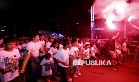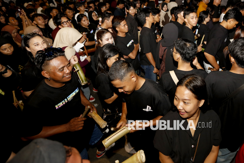REPUBLIKA.CO.ID, GORONTALO -- Sejumlah warga memukul kentungan bambu saat mengikuti tradisi koko’o sahur di Kota Gorontalo, Gorontalo, Kamis (19/2/2026).