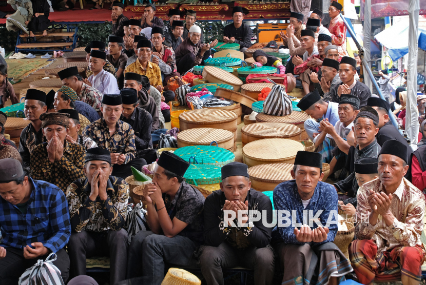 REPUBLIKA.CO.ID, TEMANGGUNG -- Sejumlah warga bedoa bersama saat acara tradisi Merti Dusun di kawasan lereng Gunung Sumbing Desa Tanggulangin, Selopampang, Temanggung, Jawa Tengah, Rabu (4/2/2026).