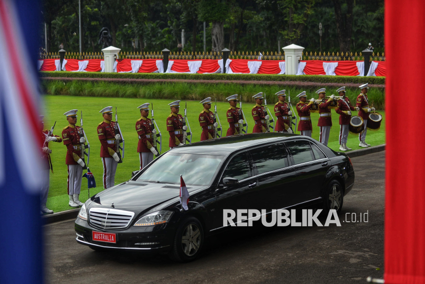 Mobil yang membawa Perdana Menteri Australia Anthony Albanese tiba di Istana Merdeka, Jakarta, Jumat (6/2/2026). Presiden Prabowo Subianto menerima kunjungan kerja PM Australia Anthony Albanese yang diharapkan dapat semakin memperkuat hubungan kemitraan strategis Indonesia - Australia di berbagai bidang. (FOTO : Republika/Prayogi)