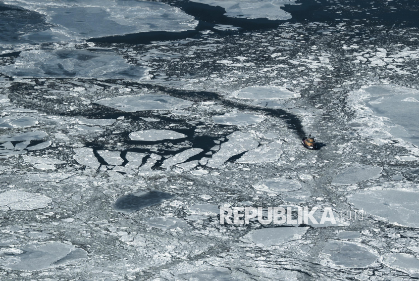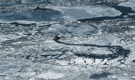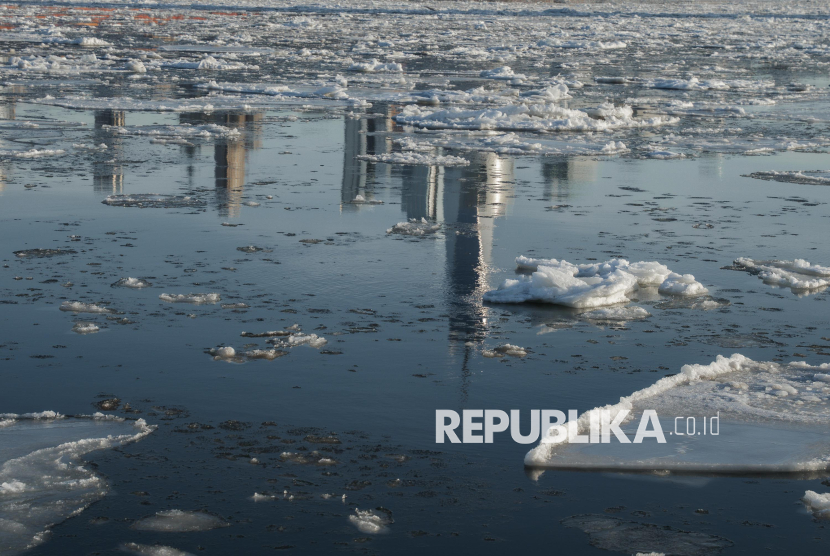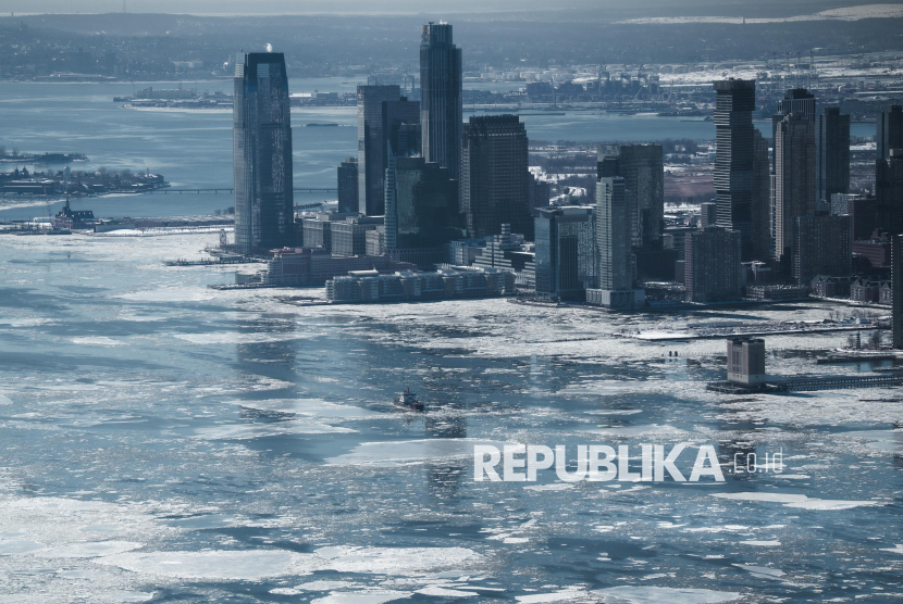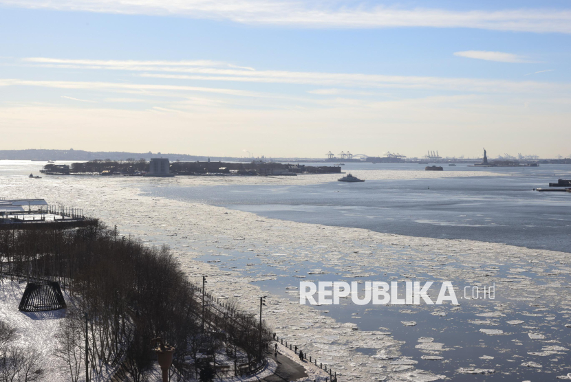 REPUBLIKA.CO.ID, NEW YORK -- Lapisan es menyelimuti Sungai Hudson di New York, Senin (9/2/2026), saat cuaca dingin ekstrem melanda kota tersebut.